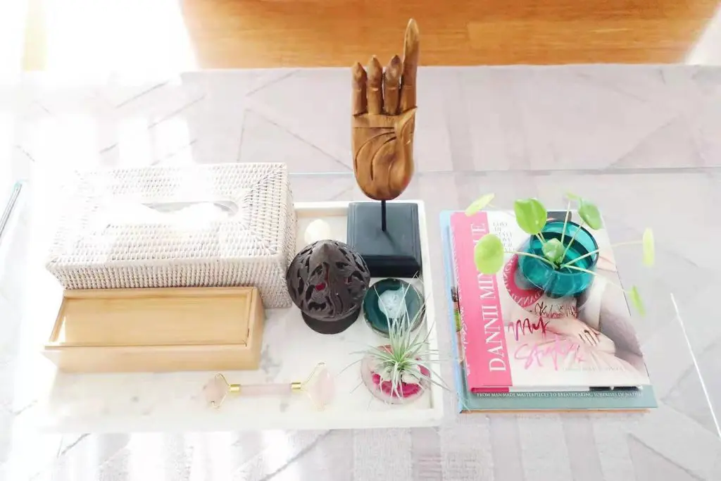 Basically, just treat it as a small bookshelf , with books, decorative bowls, art and statement pieces. Avoid using small family photos because when you sit away from your TV unit, you won’t be able to see them.